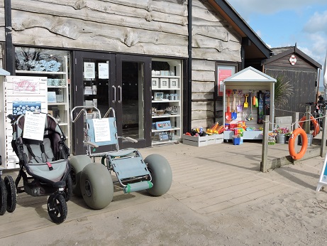 The beach is cared for by the National Trust and parking is free for members. There is a cafe and shop, and wheelchair users can borrow the beach wheelchair! Best to phone beforehand. See image.